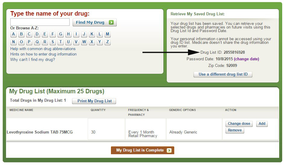 7.) Write down the Drug List ID number AND the Password Date on a separate piece of paper.