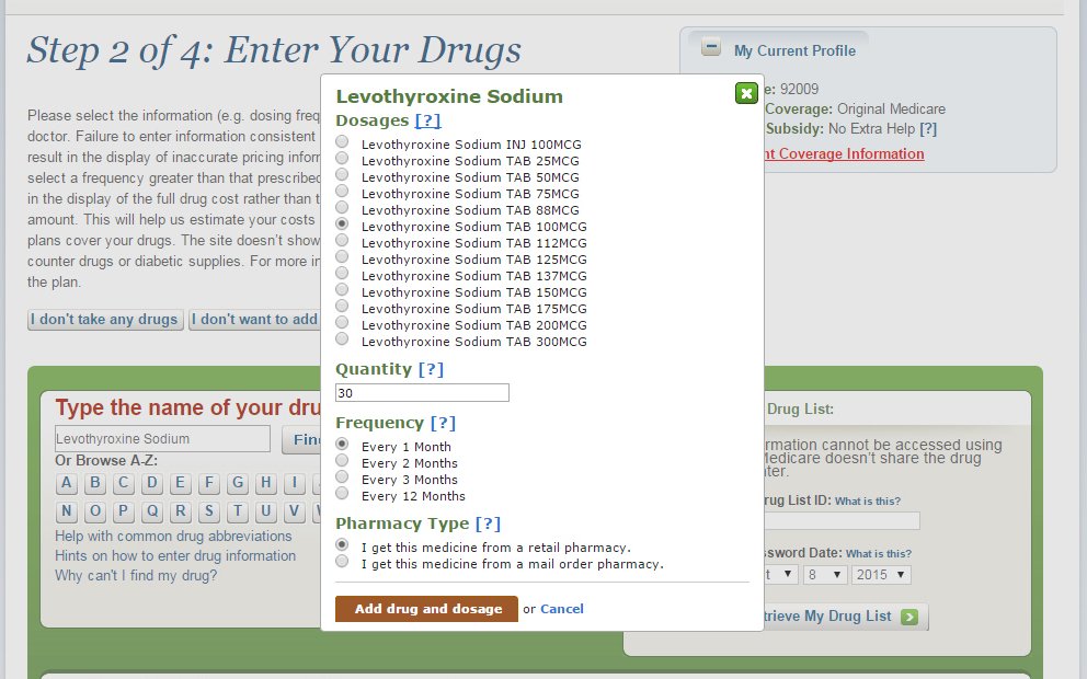 5.) Enter your prescriptions in the text box and choose the appropriate dosages for each. A window, similar to the following, displays.