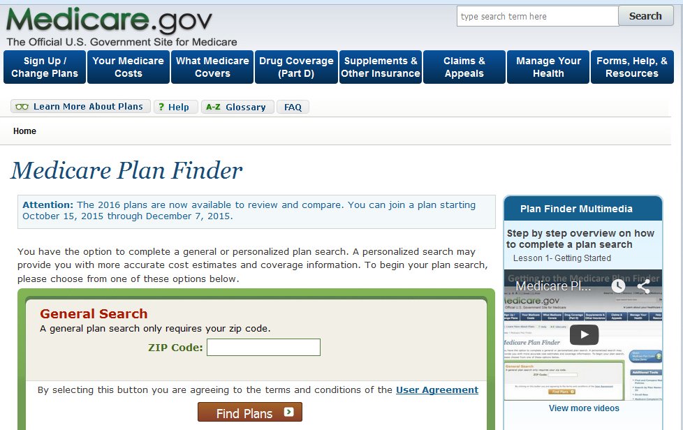 The Medicare Plan Finder page displays.