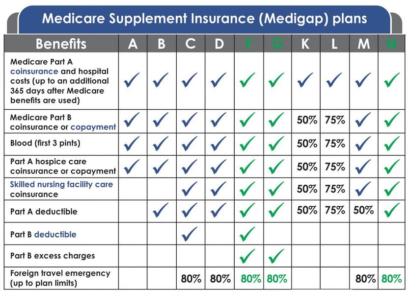 Of the 10 standardized Medicare Supplement plans, Plan F, Plan G, and Plan N (in green) are the most popular plans. Of those three plans, Plan F is considered to be the best because you have no out-of-pocket costs. For that reason, Plan F is also the most expensive plan, and not the most popular plan.